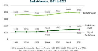 Saskatoon represents an increasing proportion of artists in Saskatchewan