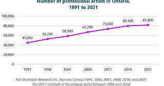 Nearly twice as many artists in Ontario in 2021 as in 1991