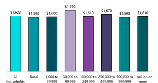 How much do urban and rural residents spend on the arts, culture, and heritage?